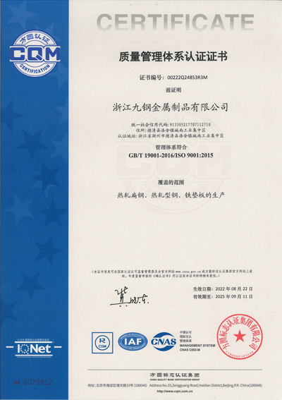 浙江九鋼公司于2015年加入省冶金協(xié)會(huì),并成為扁鋼國(guó)家標(biāo)準(zhǔn)起草制定的成員單位之一。